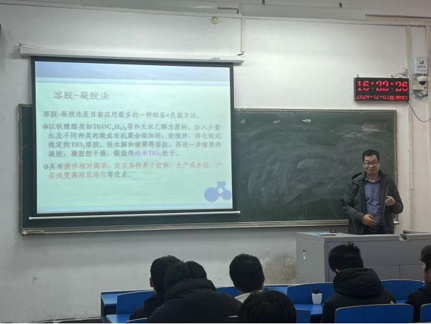 2024年12月5日16点,beat365唯一官方网站王亚波老师在4104教室开展了一场以《二氧化钛光催化技术简介》为主题的学术报告,beat365唯一官方网站2024级材料1班同学参加了本次学术报告。