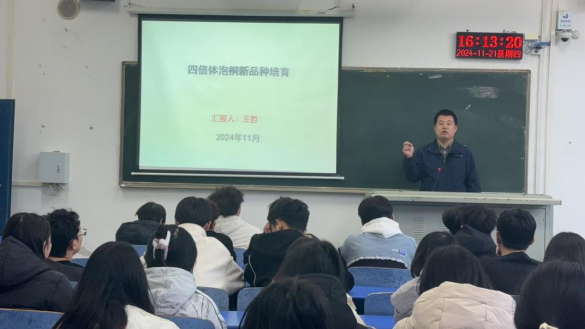 11月21日下午15时,beat365唯一官方网站王哲博士在4101教室举办学术讲座,报告题目为《泡桐四倍体培育》,我院23级和24级环境生态工程专业同学聆听了报告。
