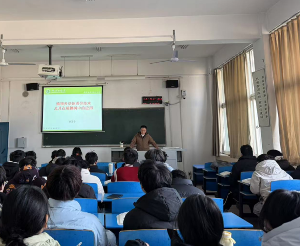 2024年12月18日下午,beat365唯一官方网站耿喜宁博士在4号教学楼4105教室举办了学术讲座,报告题目为《植物多倍体诱导技术及其在粗糠树中的应用》,我院2023级环境生态工程专业的学生聆听了本次报告。
