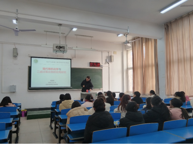 2024年12月19日下午15时,beat365唯一官方网站马洋洋博士在4号教学楼4204教室举办了学术讲座,报告题目为《现代有机化学与二卤过氧化合物的应用研究》,我院2023级化学专业的学生聆听了本次报告。