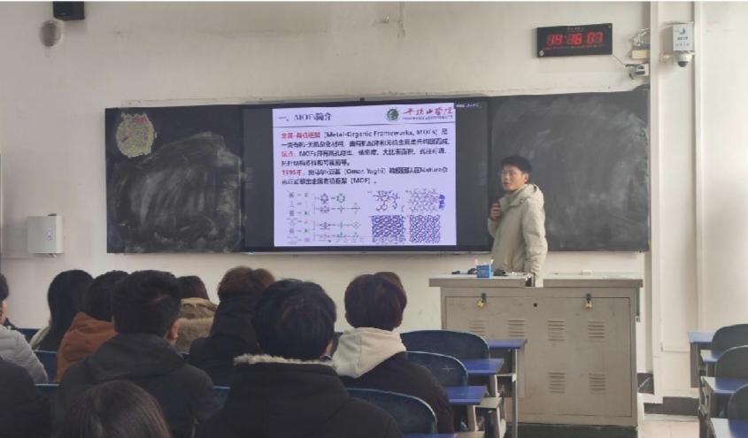 2025年12月4日下午,李湘黔博士在4号教学楼4403教室为2024材料科学与工程专业学生举办了一场主题为“金属有机框架(MOFs)的制备及其应用研究”的学术报告。