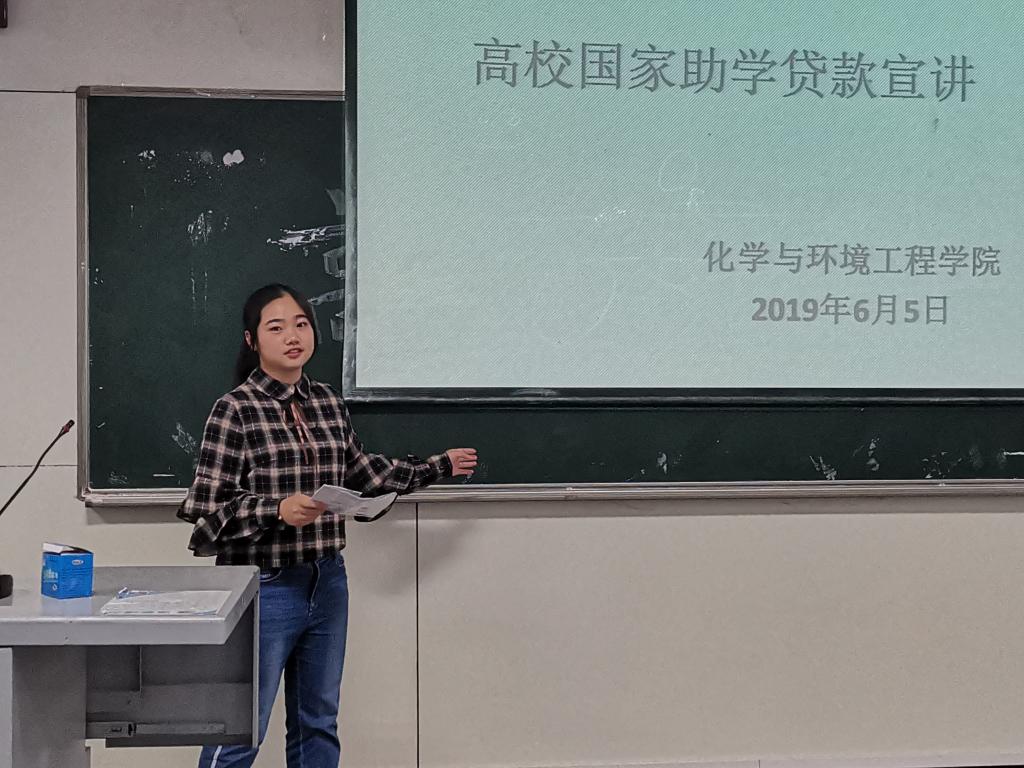 学院资助政策宣传大使丁晓红、杨梦阳同学分别向17级化工专业、18级生态和18级化学专业的同学们进行了高校国家助学贷款政策专题宣讲,主要介绍了高校国家助学贷款首贷和续贷程序、上交材料和其他注意事项等内容。