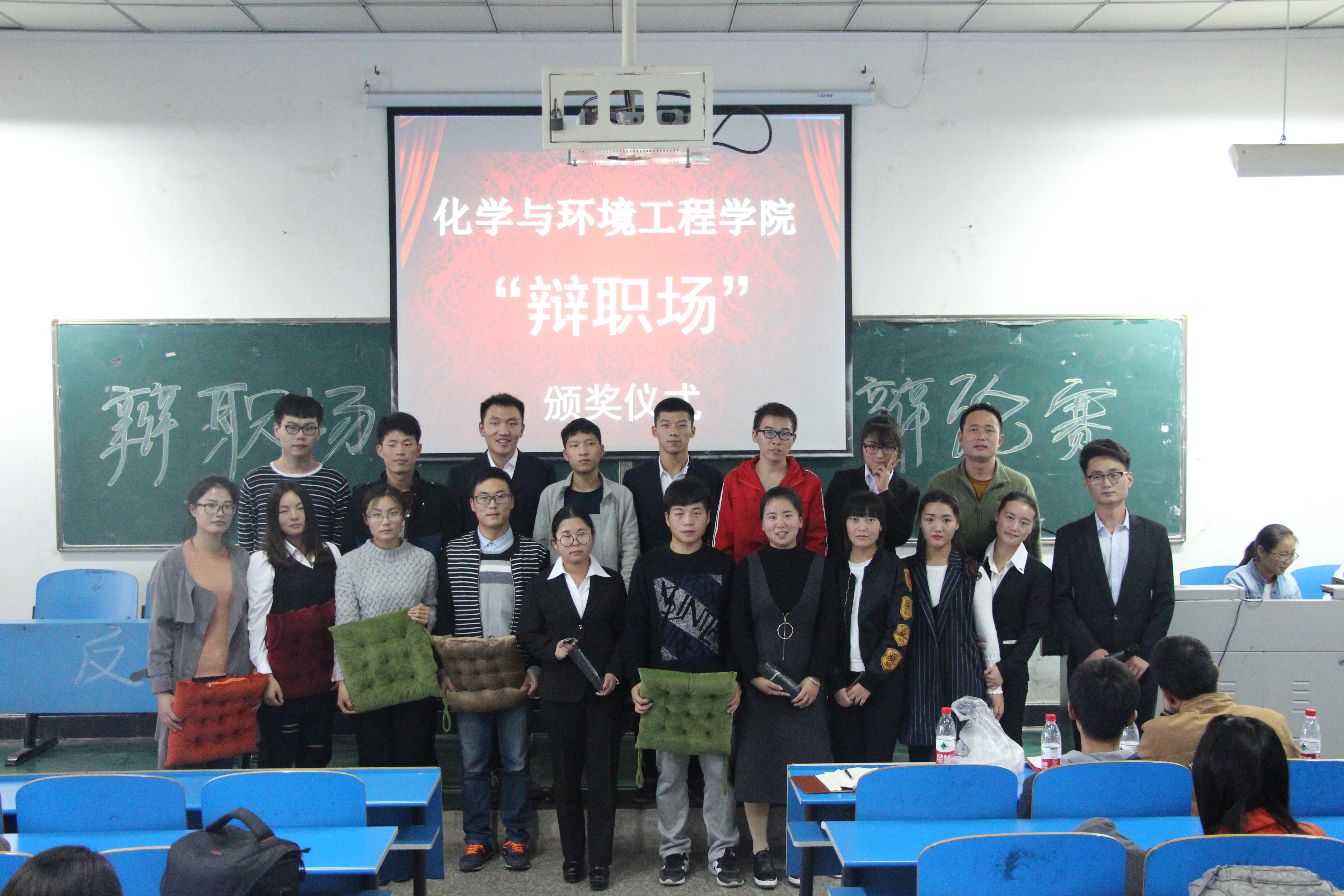 10月22日下午,我院在2406教室举办“辩职场”大赛,全体14级同学参加,本次比赛由14级生态班承办。首先进行的是正方14级化工2班与反方14级生态班的激烈角逐,双方辩手围绕“大学生就业专业能力更重要还是素质修养更重要”的主题进行了热烈探讨,各方选手坚持立场,慷慨陈词,引出了“当今社会适者生存”,“清华大学买猪肉小哥成为博士”等具体事例作为自己的论点。在自由辩论阶段,正方选手单亚男与反方选手刘琪才思敏捷,据理力争,各不相让,整场比赛如火如荼,引来观众的阵阵掌声和欢呼声。辩手们在强调自方辩题的同时,将具体事例与自身体会相结合,使本场辩论的氛围和专业水平达到顶峰。最后双方四辩对整场比赛进行总结陈词,同时指出对方辩论过程中的不妥之处,使辩论赛达到学习交流的最终目的。