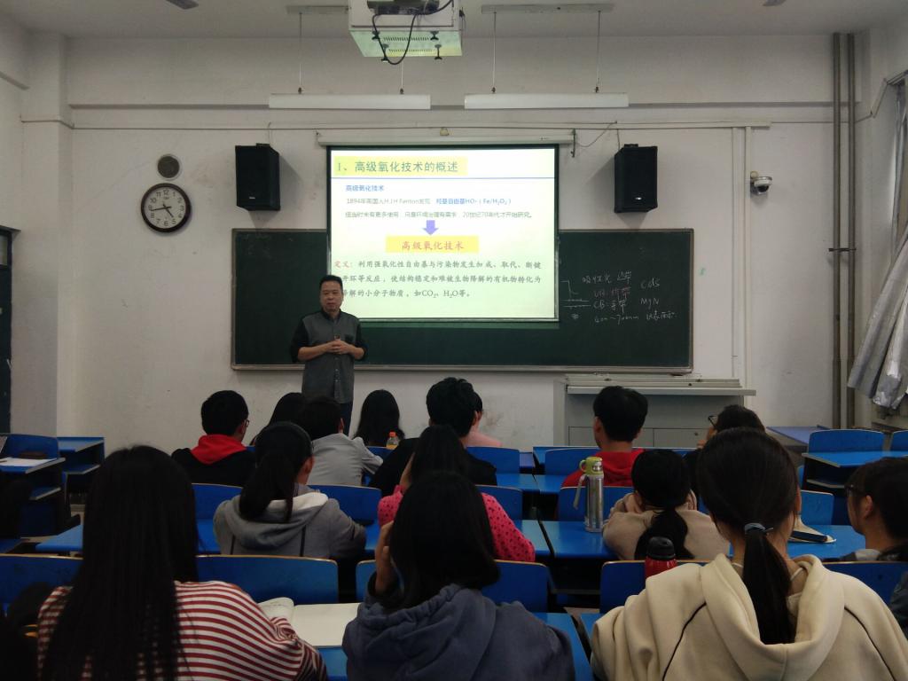 11月1日下午,beat365唯一官方网站马威教授、程国斌教授应邀在四号教学楼4303教室做了“基于污水中抗生素残留去除的光降解及机理研究”“催化O3氧化技术在工业废水深度处理及资源化应用研究”学术报告。18级化学工程与工艺一班的学生听取了此次报告。