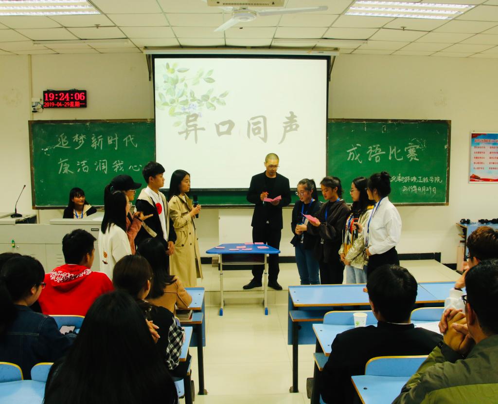 4月29日晚,我院党总支与求是倡廉学社开展“追梦新时代,廉洁润我心”的主题成语比赛在L411举行,17、18级全体师生代表组成11支队伍参与比赛。