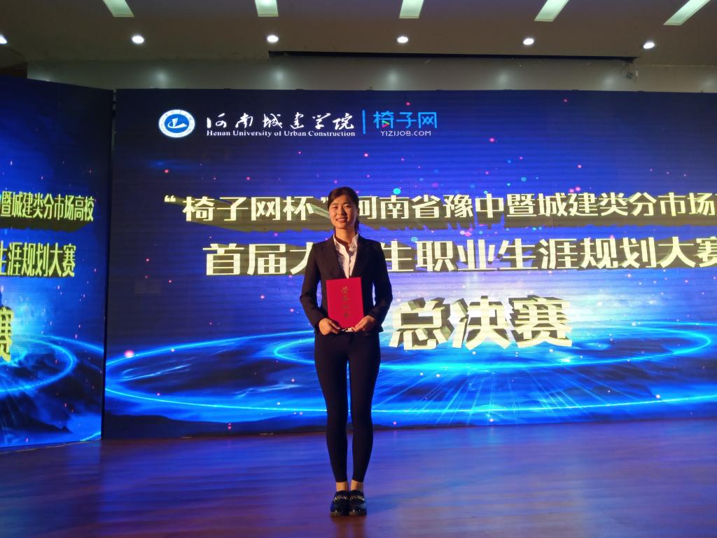 12月14日,“椅子杯网”河南省豫中暨城建类分市场高校首届大学生职业生涯规划大赛决赛在河南城建学院举行,我院16级化学工程与工艺专业王丹丹同学参加,师广岭老师担任其指导教师。