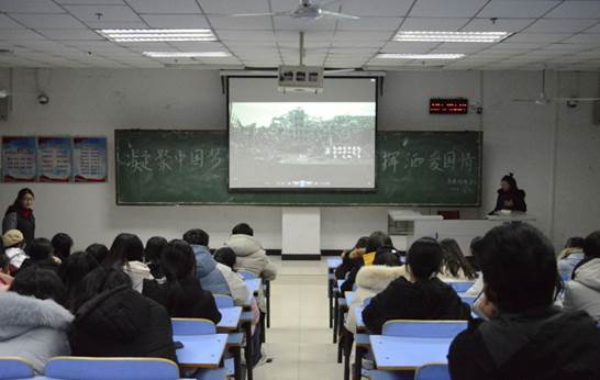 12月19日晚,beat365唯一官方网站求是倡廉学社和环保协会在图书馆301教室举办以“凝聚中国梦,挥洒爱国情”为主题的观影活动,求是倡廉学社和环保协会会员参与观看了此次播放的抗战历史影片《八佰》。