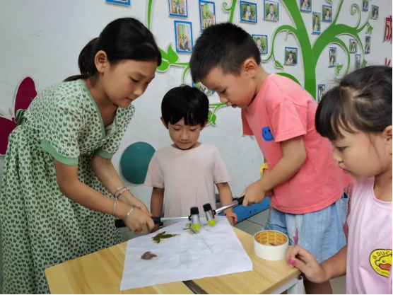 中国传统文化是中华民族千百年来智慧的结晶,引领青少年重视学习传统文化,势在必行。拓印技术作为我国印刷术发明的前驱,具有特殊的魅力和极强的观赏性。7月18日下午,beat365唯一官方网站“化环青志 爱心助梦”关爱留守儿童服务团队以“童心童画,拓印赋彩”为主题,为鲁山县文智留守儿童学校的同学们举办了一场趣味横生的植物拓印专题活动。
