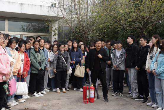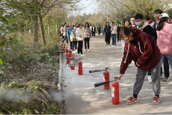 活动伊始,郝处长为同学们讲述了消防安全基础知识,他结合各类火灾案例,让同学们了解了火灾的危险性,并就养成公共消防意识、个人如何应对突发火灾事故等内容进行了讲解:“同学们面对火灾一定要镇静,不慌乱,采取正确的自救措施以及求救措施;要尽可能地掌握灭火器的使用方法,了解周围的安全隐患,尽可能地杜绝火灾事故的发生。”随后,郝处长进行了灭火实战演练,让同学们动手学习如何正确使用灭火器灭火。面对燃烧的火焰,同学们沉着冷静,按照老师讲解的方法步骤,成功的将火扑灭。