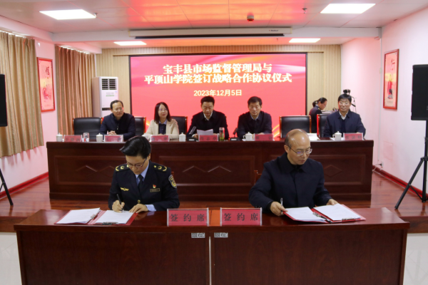 经济管理学院院长张振江与宝丰县市场监督管理局党组书记、局长王晓丽签订战略合作协议。根据协议,双方将在人才培养、科学研究、行业师资建设、服务社会等方面进一步加强合作,推动科技创新、成果转化,实现校地双方高质量合作共赢。
