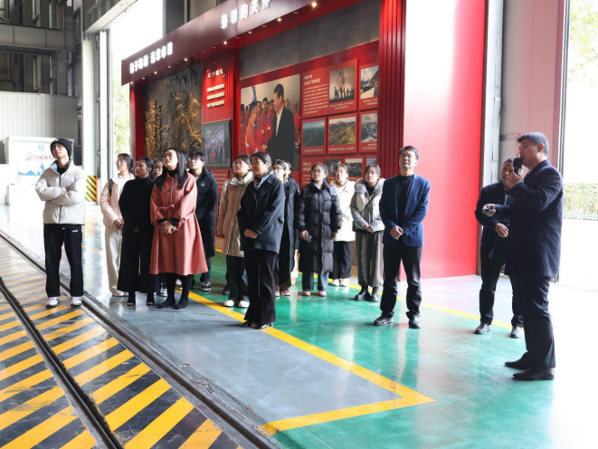 活动当天,师生们在中铁装备工作人员的带领下,首先参观了公司的展厅。展厅内,一块块展板详细记录了中国盾构产业从无到有、从弱到强的艰难发展历程。通过看展板、听讲解,党员们深刻感受到了中国盾构人在面对技术封锁、市场垄断等重重困难时,所展现出的坚韧不拔和勇于攀登的精神。同时,大家也了解了中铁装备在不断攀登掘进机技术制高点,掌握核心技术话语权方面所做的努力和取得的成就。