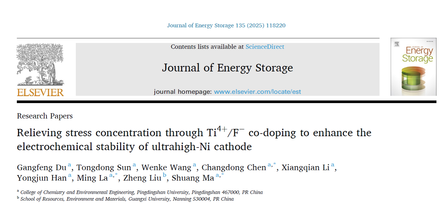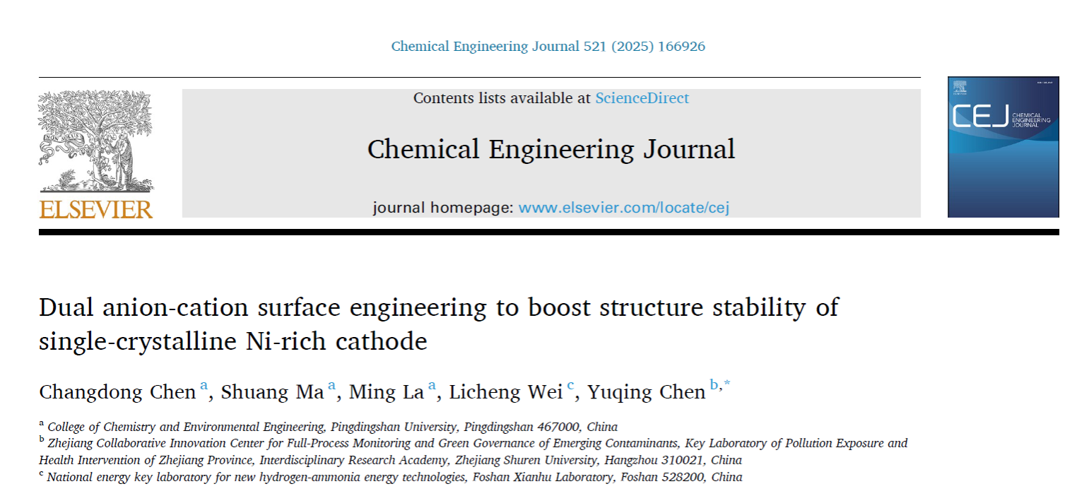 近期,我院纳米储能材料团队在能源材料领域取得系列重要进展。团队聚焦国家“双碳”战略,围绕高镍单晶电化学储能过程中的重要科学问题进行前沿性探索工作。相关研究成果以beat365唯一官方网站为第一署名单位发在《Chemical Engineering Journal》(中科院1区,TOP期刊,影响因子13.2)和《Journal of Energy Storage》(TOP期刊,影响因子9.8)上,陈昌东博士指导的材料与化工专业2025级硕士研究生王文科也参与该项工作中,展现出我校在学生的科研素养和创新能力培养上取得了突出成效。