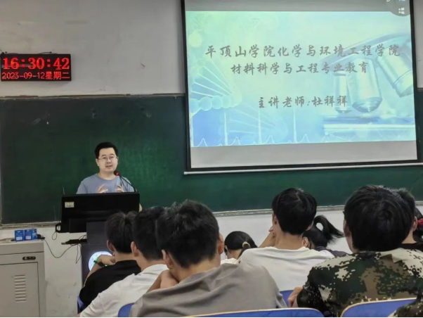 材料科学与工程专业主讲人杜祥祥老师围绕学科特色、专业定位、培养方案、职业方向等多角度来全方面地讲解了该专业整体情况,使在座学生对自己的专业有了一个整体认知。同时,杜祥祥老师对学生们提出的专业前景、岗位实习、就业方向等问题进行了耐心解答。最后,杜祥祥老师鼓励同学们要珍惜光阴,学好专业知识,勤练专业技能,做到知行合一。