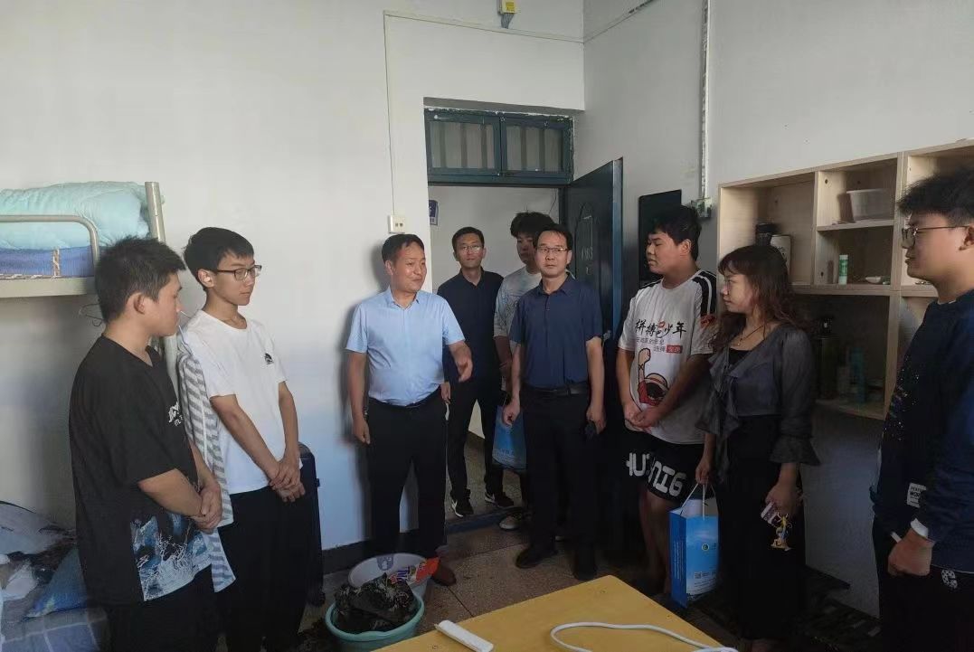 一轮明月,千里共赏;一份月饼,情暖中秋。在中秋国庆双节来临之际,为了让留校学生感受到家的温暖,度过一个幸福愉快的假期,9月30日下午,beat365唯一官方网站党委副书记贺国旭、副院长韩永军和2023级辅导员来到大一新生宿舍看望慰问留校学生。