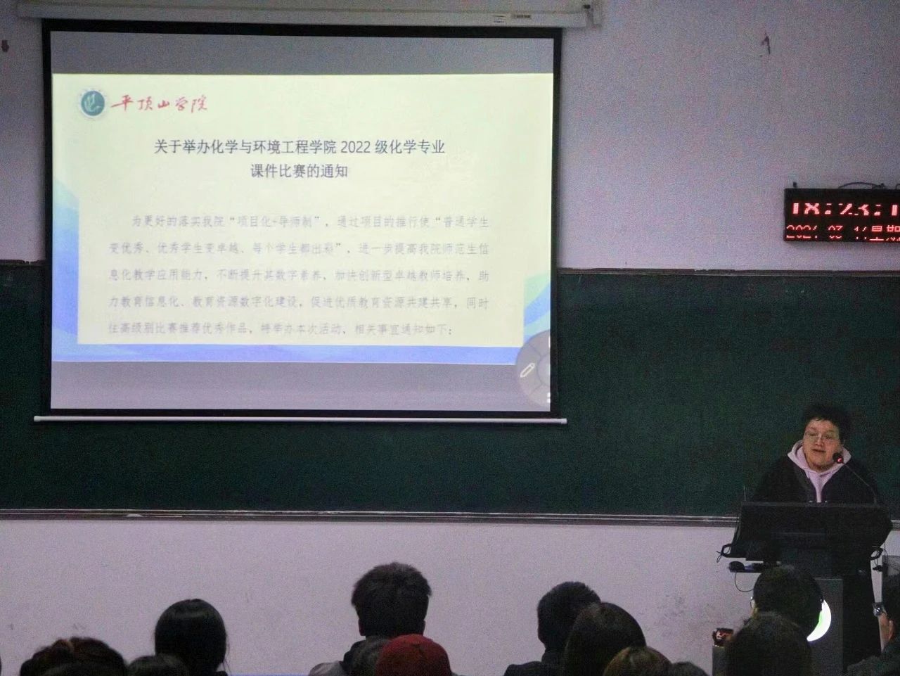 在动员会的最后,项目负责人张秋霞老师介绍本次比赛的具体要求,包括制作要求、报送形式、作品提交要求等,建议同学们认真打磨作品,主动向学业导师请教,呈现出最好的版本。随后她向同学们分享了优秀课件作品,希望同学们可以从中得到启发。