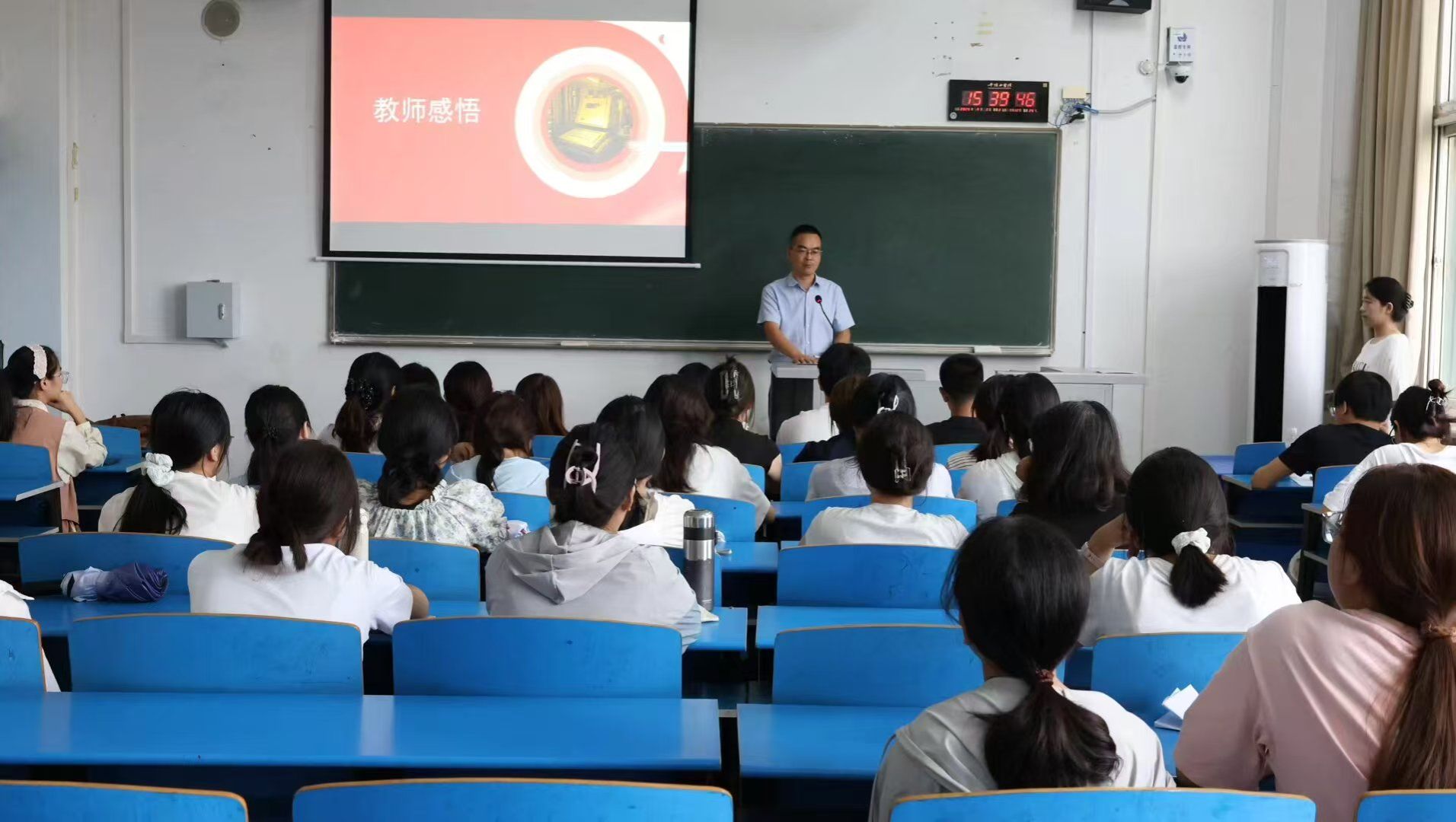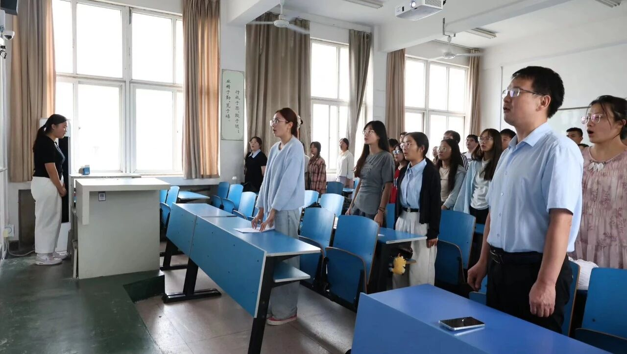最后,“唱响红色歌曲,宣誓青年壮志”环节将班会推向高潮。全体合唱《歌唱祖国》,并在庄严宣誓中立下“请党放心,强国有我”的青春誓言。