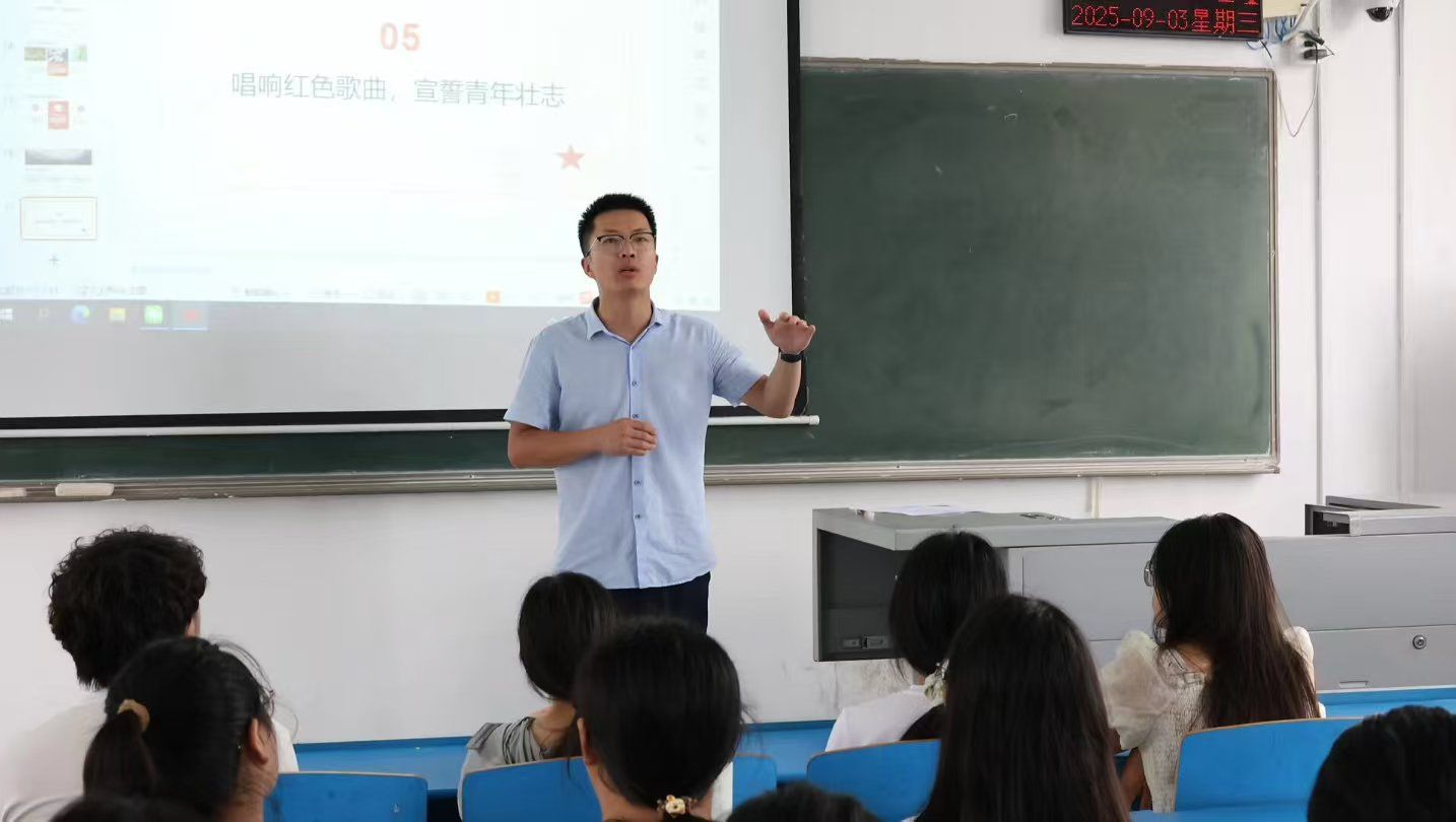 为弘扬伟大抗战精神,厚植家国情怀,在纪念中国人民抗日战争暨世界反法西斯战争胜利80周年之际,beat365唯一官方网站党委书记曹萍、院长韩永军、科研处副处长程世平、党委副书记王利军、副院长王莉、副院长罗晓强以及教师代表、全体辅导员深入各班组织开展“抗战胜利八十载,青春奋进新时代”主题班会,通过多元形式重温峥嵘岁月,凝聚奋进力量。