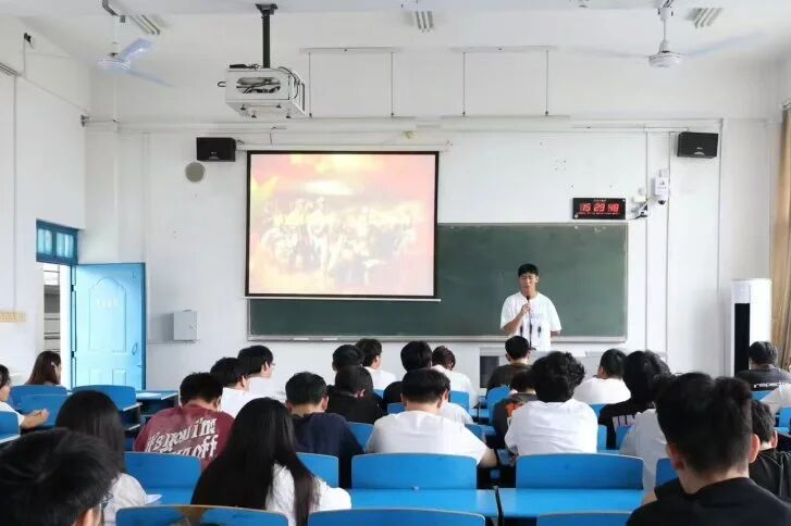 随后,各班创新开展了形式多样的主题教育活动。有的班级组织“红色家书诵读会”,同学们深情诵读左权致妻子、赵一曼致儿子等革命先烈的家书,通过饱含深情的朗诵,感受字里行间流露出的坚定信仰和家国情怀。有的班级举办了“抗战英雄故事会”,同学们通过分享杨靖宇、张自忠等英雄的感人事迹,深刻感悟到抗战精神的伟大力量。