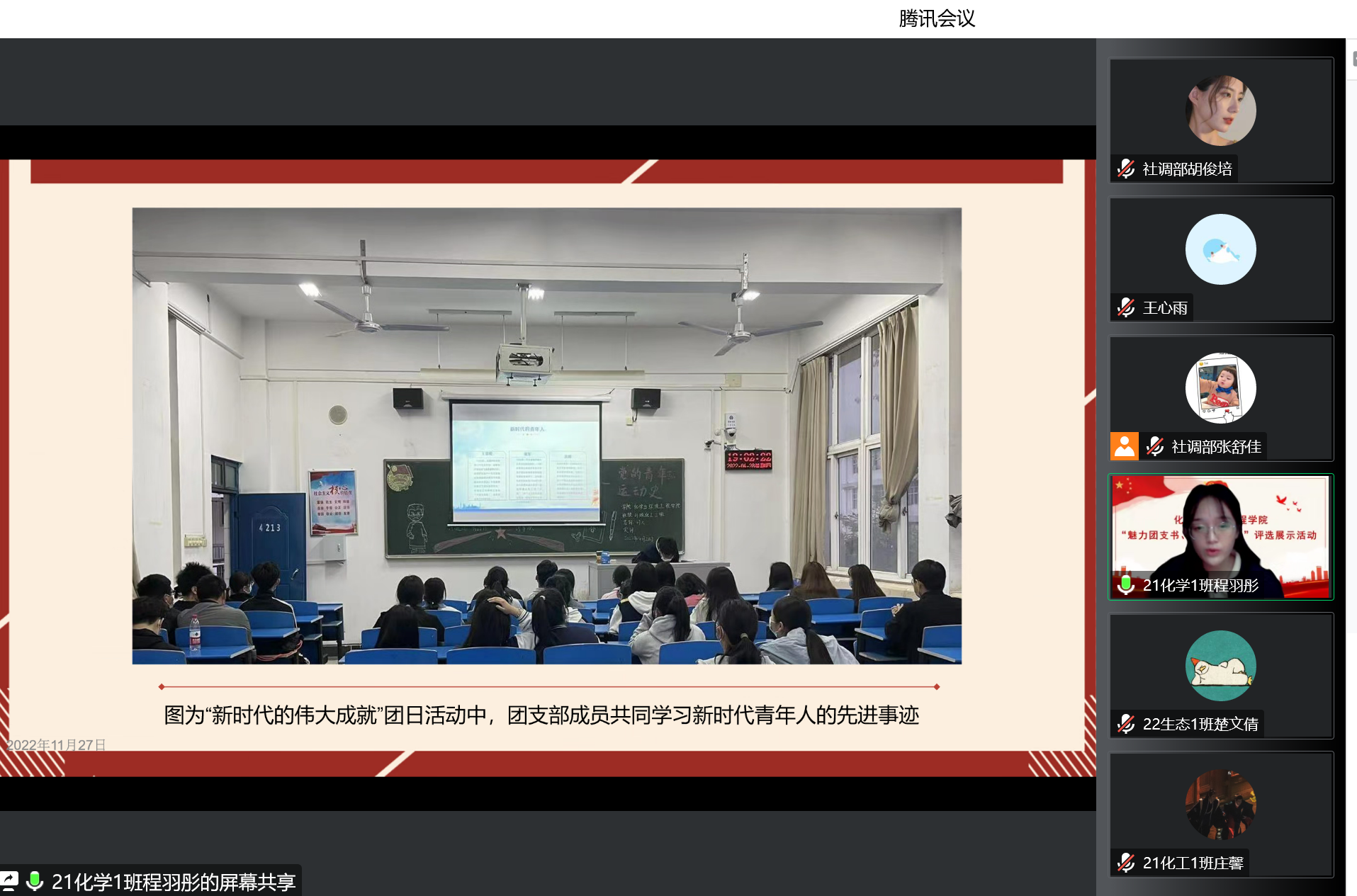 在述职中,各团支部书记通过运用数据、图片、表格等形式,详细介绍了团支部开展党史学习教育、“喜迎二十大,青春心向党”,学习党的二十大精神、“绿色低碳同倡导,节约节俭共践行”主题团日活动和积极组织团员在家乡各地参见志愿活动及森林和地下志愿调研等丰富的团支部活动的落实情况和学习成效,总结了工作中的不足和下一步改进提升的目标和方式。
