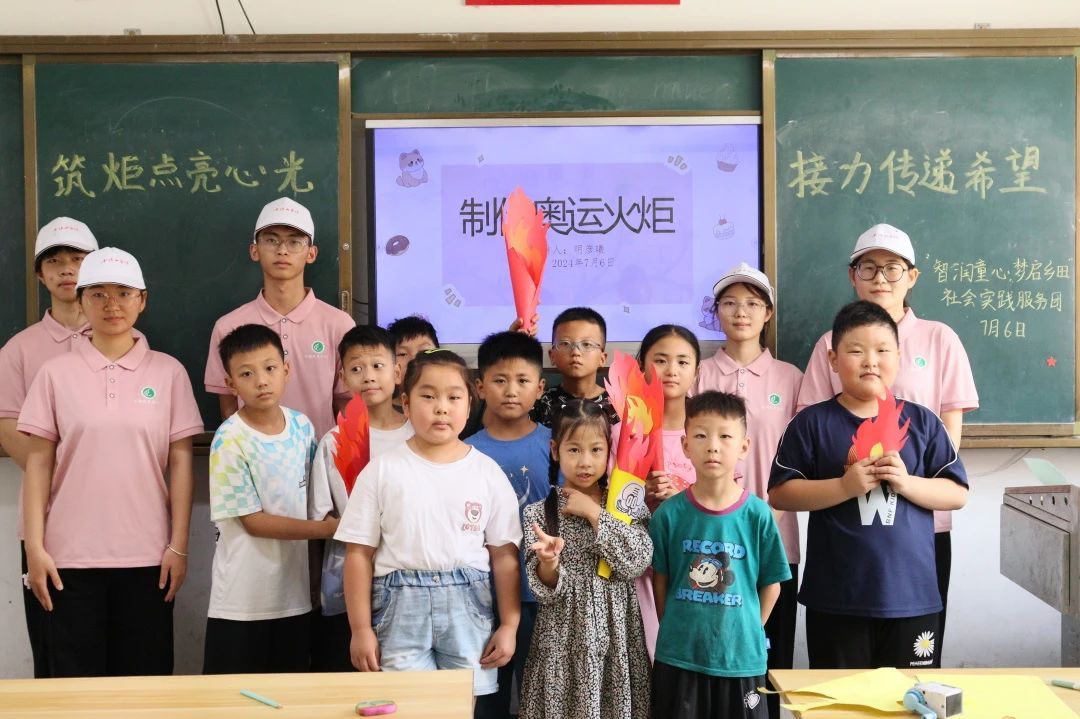 在第33届夏季奥林匹克运动会即将到来之际,为宣传奥运知识,促进学生了解奥运、参与奥运、热爱奥运,我院“智润童心,梦启乡田”社会实践服务团于7月6日在鲁山县文智留守儿童学校开展“筑炬点亮心光,接力传递希望”奥运主题活动,让奥运精神在火炬的传递中深植孩子心田。