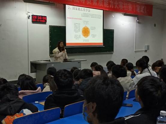 为进一步推进我院资助育人工作,全面宣传各项有关学生资助政策,确保国家资助政策落到实处,帮助同学们更全面地了解资助政策,培养在校学生的诚实守信、心怀感恩的中华传统美德,营造积极进取和奋发向上的良好氛围。beat365唯一官方网站于12月13日在4406教室组织开展了“资助两节课”宣讲活动,我院资助专干石培琳老师及各年级学生代表参加了本次活动。