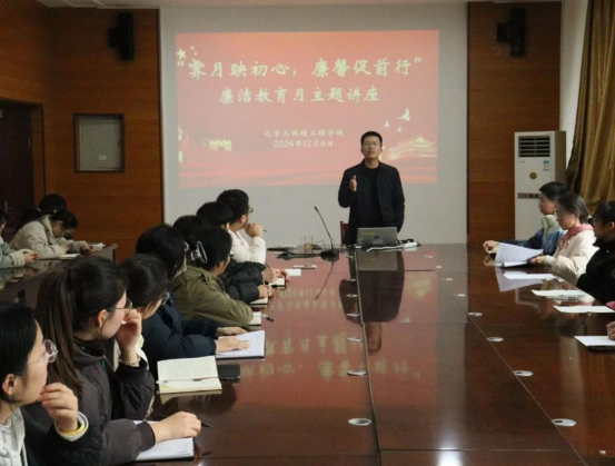 学院学工办副主任石培琳于12月6日以“青春正气:大学生廉洁自律与成长成才之路”为主题,为各年级学生代表开展讲座。石老师从大学生成长成才的角度出发,深入剖析了廉洁自律对于个人成长的重要性。她指出,廉洁自律不仅关乎个人的品德修养,更关乎个人的未来发展和社会的和谐稳定。因此,广大学生应当树立正确的廉洁观念,将廉洁自律内化于心、外化于行,努力成为德智体美劳全面发展的社会主义建设者和接班人。